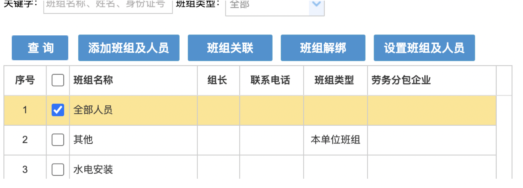 - 添加或修改 班组,建议选择“其它“班组,进行修改。