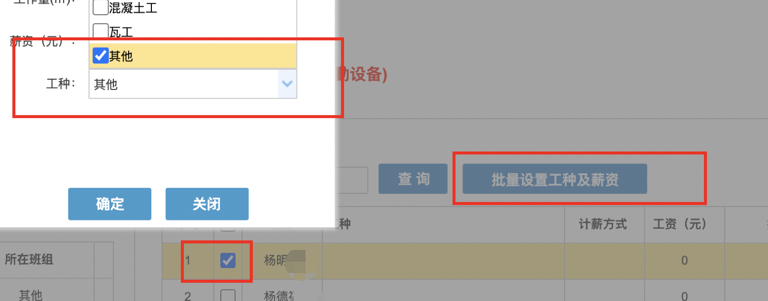 - 提交前,可能需要设置“工种“、”班组长“,根据要求配置即可;